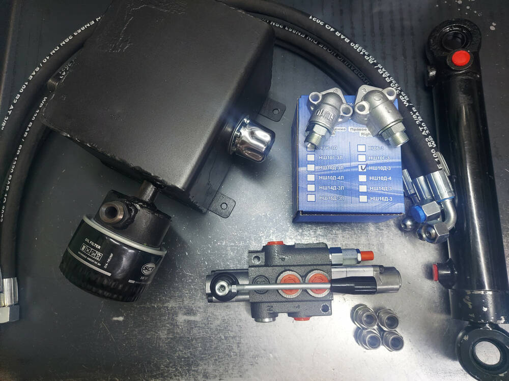 Можлива індивідуальна комплектація під замовлення під Ваші потреби, так само можна придбати кожен із компонентів окремо! Наша компанія є однією з провідних компаній на ринку з досвідом понад 15 років у сфері гідравліки та пневматики, наші фахівці підберуть найкращий варіант для вашої техніки. Цей комплект представлений як один із популярних і поширених для встановлення на мінітрактора та мотоблоки. Є безліч варіантів комплектацій (наприклад, у виборі гідророзподільника на 1 або 2 секції, об'єм гідробак, гідроциліндр із різним ходом і діаметром штока, привод насоса профіль А або профіль Б, довжина рукавів, модель насоса НШ і його обертання і тд) — це все ми допоможемо Вам підібрати та надати найкращу професійну консультацію.