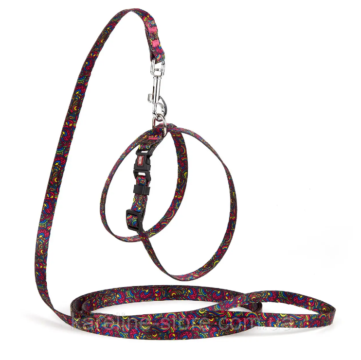 Розмір шлеї: ширина: 10 мм, об'єм: А: 300 мм, В: 330 мм, довжина повідця: 1800 мм;