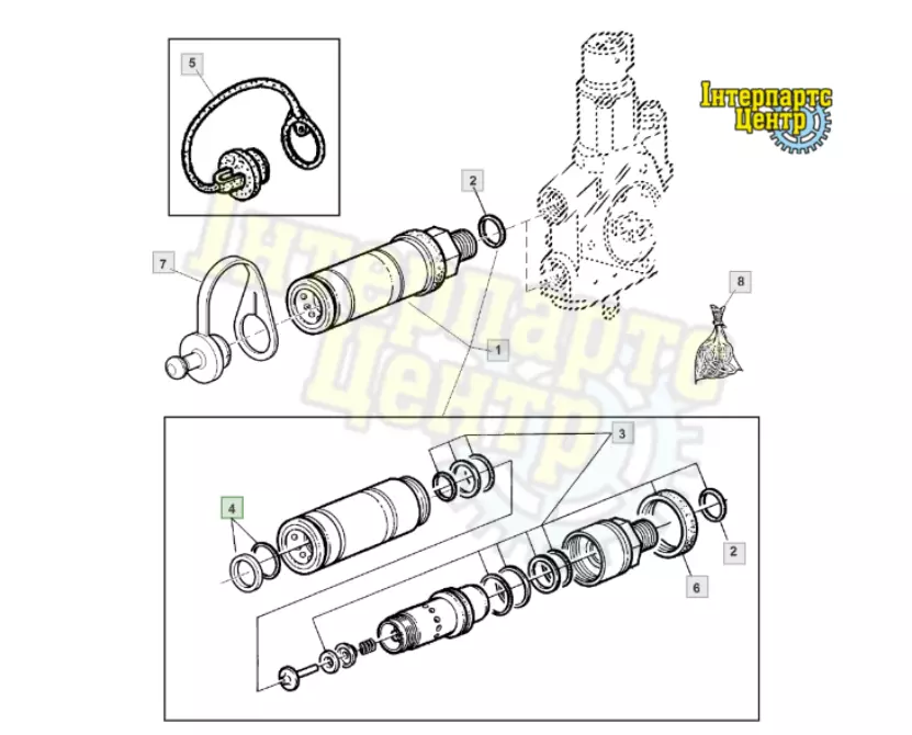 Комплект кілец ущільнюючих муфти гідророзподільника John Deere.
