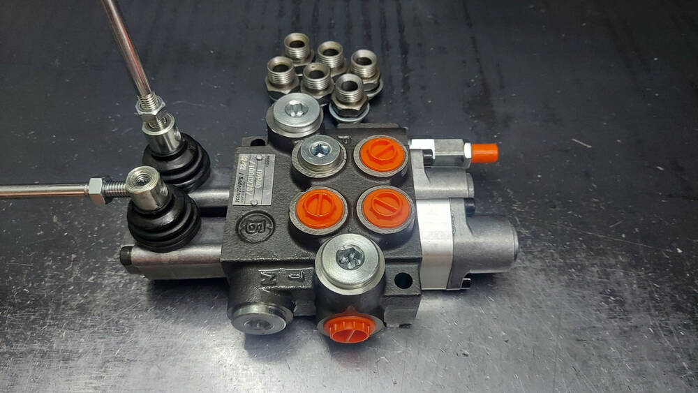 Цей комплект штуцерів складається із 6 штуцерів, 2 штуцери йдуть на вхід і злив РТ — G 1/2" на М20х1.5 ( ключ 24, 4 штуцери йдуть на робочі органи А, В — G 3/8" на М20х1.5 (ключі 24). Усі штуцери йдуть із якісними металогумовими кільцями DICSA, Іспанія