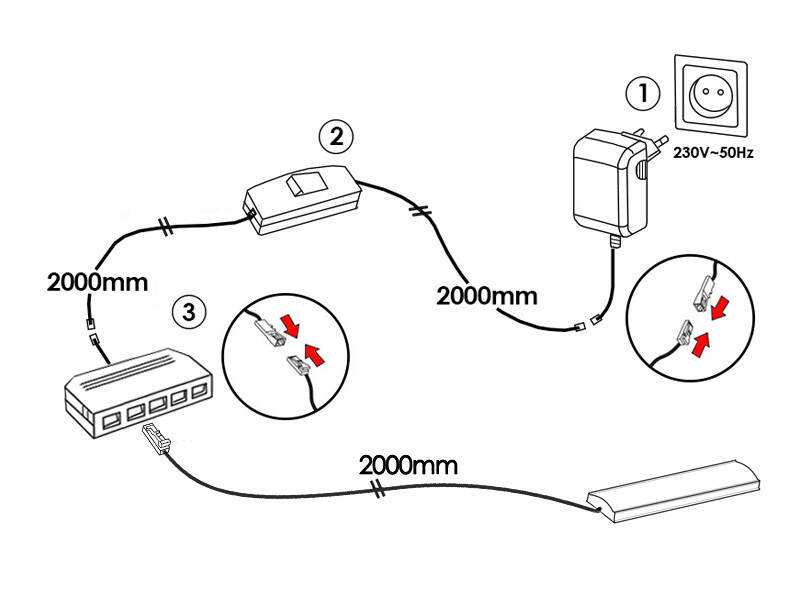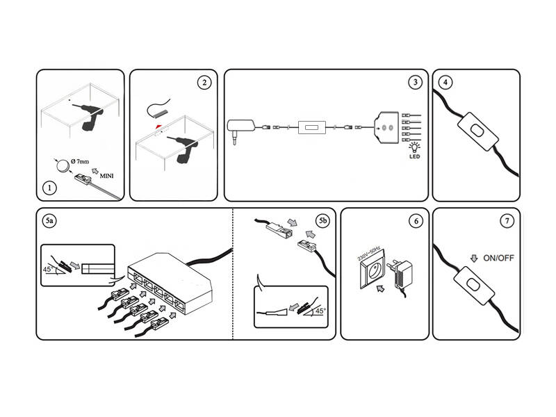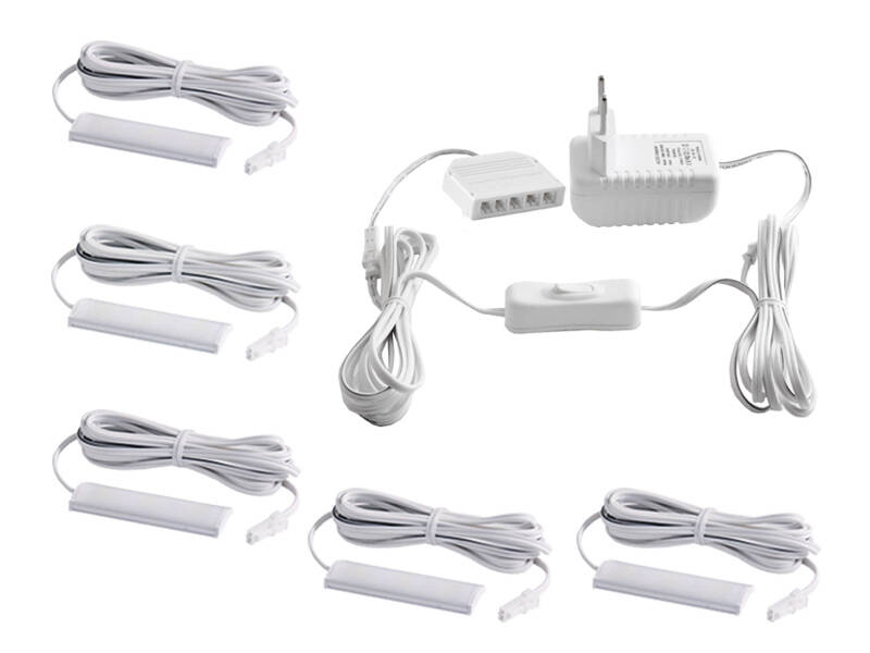 Комплект світильників світлодіодних з ручним вимикачем накладних для підсвітки меблевих полиць 5шт 220V біле світло білий провід LEDUA