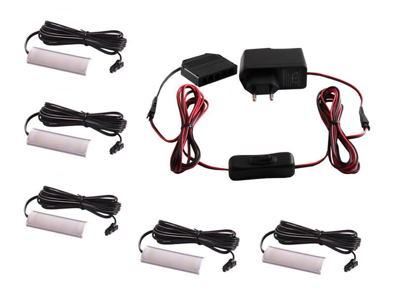 Комплект світильників світлодіодних з ручним вимикачем накладних для підсвітки меблевих полиць 5шт 220V біле світло чорний провід LEDUA