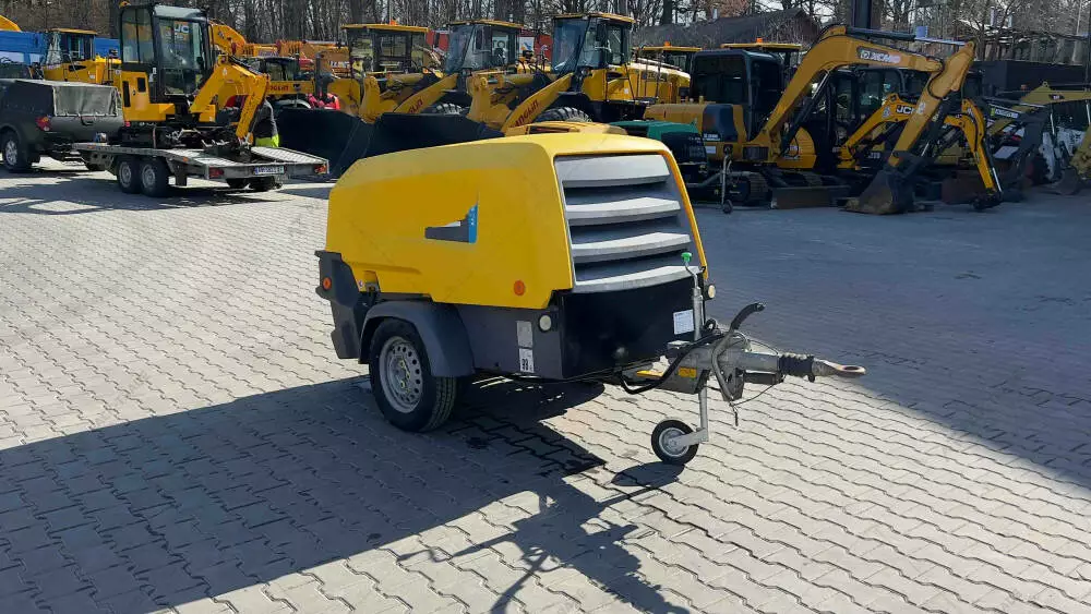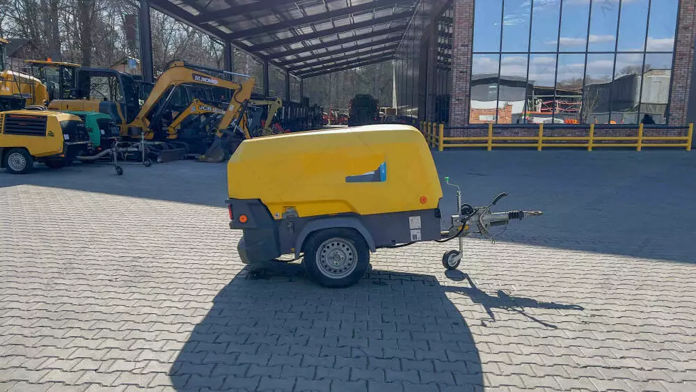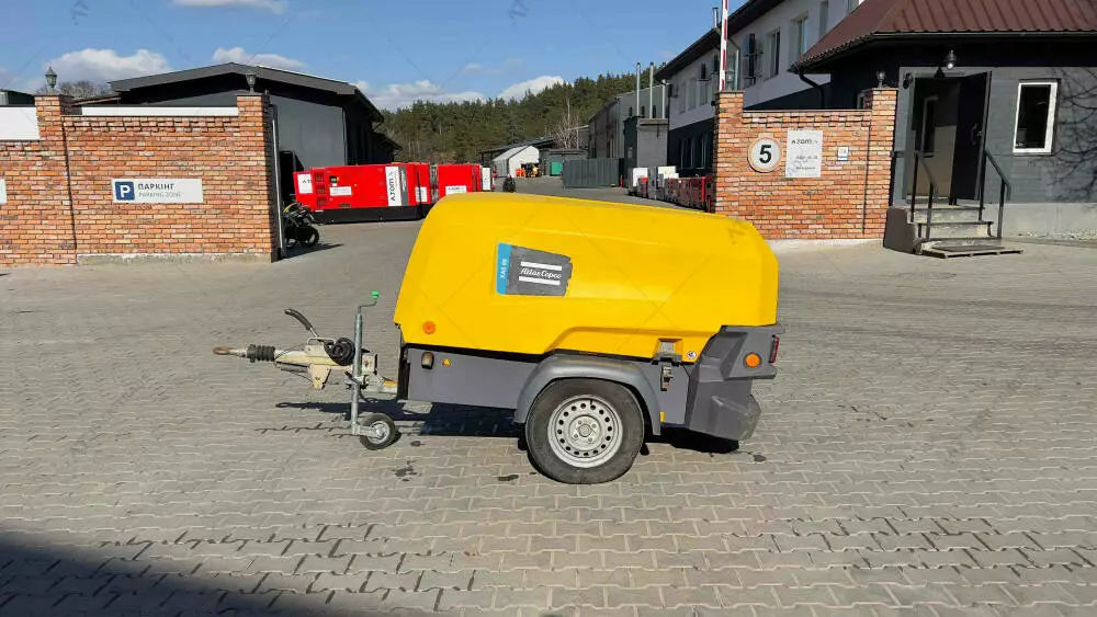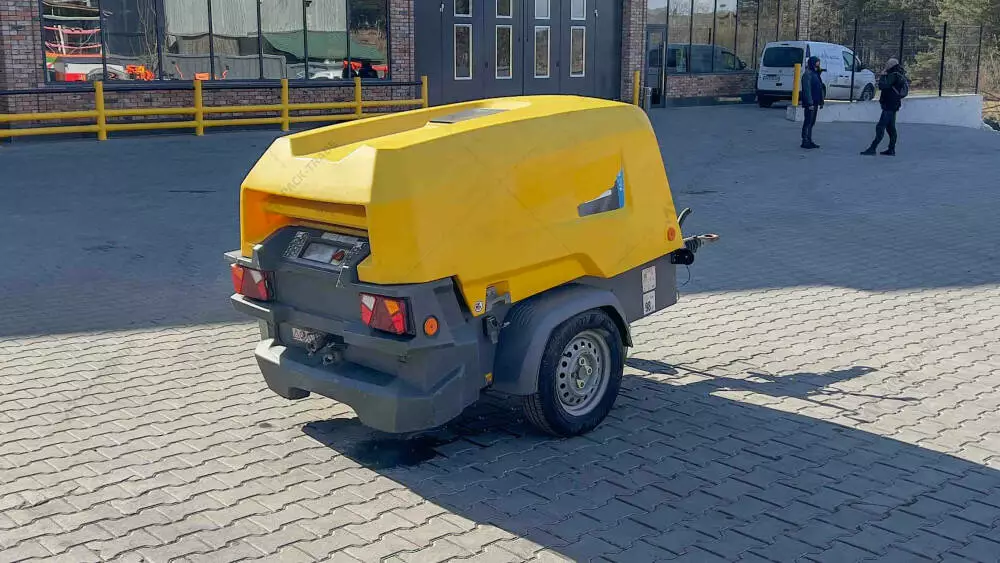 Компресор б/в Atlas Copco XAS68, 2017 р/в, з напрацюванням 627 м/год. Двигун 26,9 кВт. Шини 155/80R13. Робочий тиск 7 Бар.