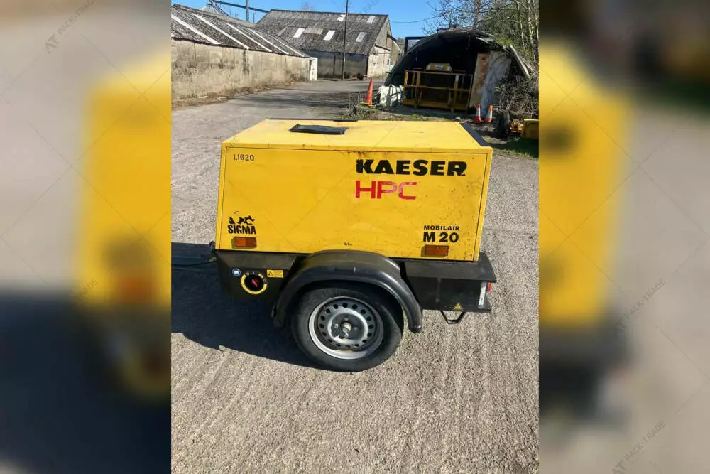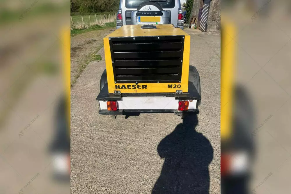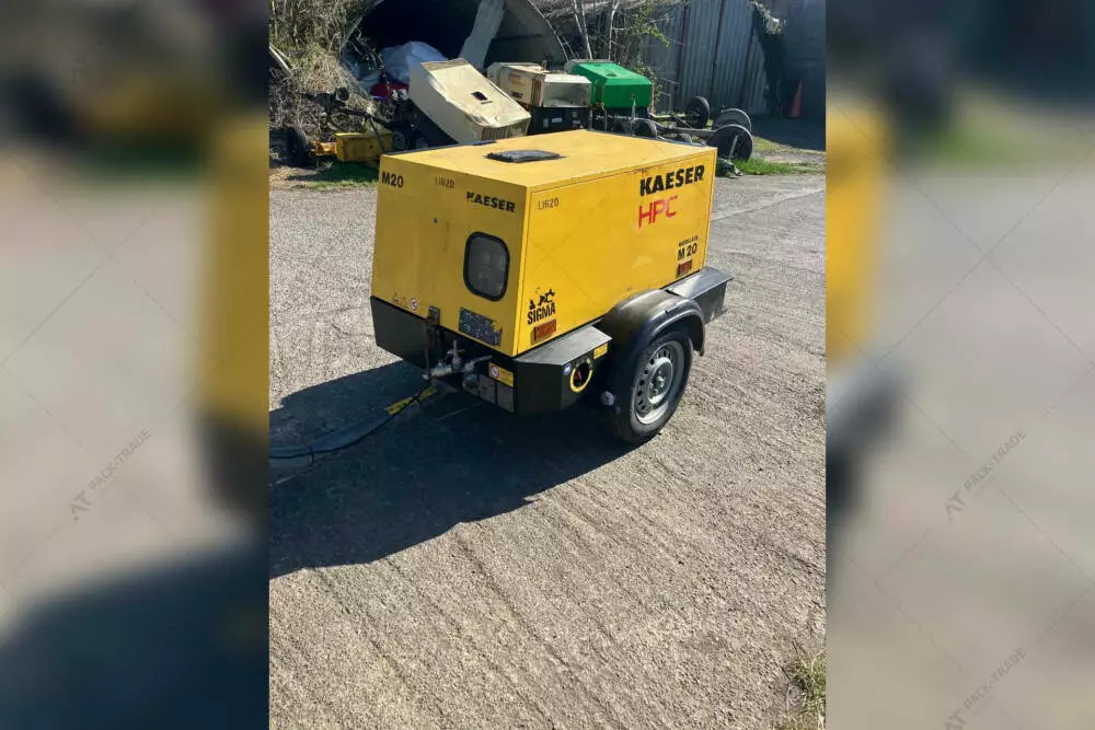 Компресор б/в Kaeser M20, 2017 р/в, з напрацюванням 1102 м/год. Потужність двигуна – 14 кВт. Двигун – Kubota D722 Stage V. Габаритна Ширина – 1,22 м. Висота – 1,13 м. Довжина – 3,0 м. Шини: 145/80 R 13. Робочий тиск – 7 Bar. Подача повітря – 2 м3/хв. Підключення повітря – 2х G3/4.