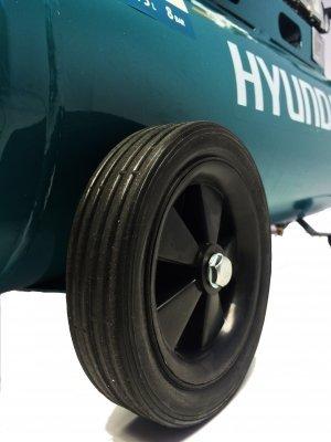 Нет мелочей в совершенстве Даже мельчайшие капельки влаги в воздухе могут проявиться появлением пятен при покраске кузова автомобиля. Досадные огрехи исключены в данной модели компрессора. Так как аппарат снабжен дополнительным устройством влагоудалителем. Небольшое приспособление полностью удаляет капельки воды из воздуха. Причем работа влагоудалителя никак не влияет на производительность компрессора, а качество выполняемых операций возрастает в десятки раз. ДВИГАТЕЛЬ ПОВЫШЕННОЙ ВЫНОСЛИВОСТИ HYUNDAI На профессиональном компрессоре установлен электромотор, с продолжительным рабочим ресурсом. Увеличена мощность двигателя до 3,0 л.с. Воздушный компрессор подключается к стандартной бытовой электросети и имеет необходимую защиту от возможных проблем с напряжением. Электрический двигатель обладает низким уровнем шума и малой степенью вибрации. Принудительное охлаждение обеспечивает стабильный тепловой баланс. УЛУЧШЕНАЯ ПОРШНЕВАЯ ГРУППА 2 цилиндра, из которых состоит система поршней воздушного компрессора Hyundai, установлены в центральной части корпуса компрессора, что помогает более точно распределить нагрузку и, соответственно, снизить вибрационные колебания. Поршневая группа специально создана для быстрого достижения максимального давления в ресивере до 8 бар. Высокая износоустойчивость цилиндров обеспечена прочным чугунным сплавом. Легкость транспортировки на сложных рельефах Несмотря на массивность и достаточно большие габариты, воздушный компрессор Hyundai легко доставить на рабочую площадку. Увеличенный диаметр транспортировочных колес поможет удерживать хорошее сцепление с ровной и наклонной поверхностью. В рабочем положении колеса выполняют роль дополнительных антивибрационных приспособлений. Большая металлическая рукоятка предназначена для лучшего контроля направления движения. ПРОФЕССИОНАЛЬНЫЙ РЕМЕННОЙ ПРИВОД Именно профессиональные модели оснащают ременным приводом, который обладает несколькими очевидными достоинствами, помимо прямого доступа ко всем деталям привода и постоянного визуального контроля за его сохранностью. Ременной привод это максимальная передача мощности от двигателя, причем, обороты коленвала при этом, существенно снижаются. Что, конечно же, продлевает стабильный эксплуатационный период агрегата. ДАТЧИК МАСЛА В компрессоре размещен увеличенный картер на 1,5 л, который способен вместить больший объем специального масла. Постоянная смазка это качественное снижение силы трения между соприкасающимися деталями, она необходима для повышения их износоустойчивости. Датчик отражает расход масла в системе, прозрачное окошко помогает определиться со временем следующего наполнения картера и защитит двигатель от аварии. Профессионализм на недостижимой высоте Полностью открытая верхняя система ременного привода позволяет мастеру осуществлять постоянный визуальный контроль во время работы. Мягкий привод легко поддается замене. При внезапных проблемах с двигателем, привод не даст ему выйти из строя. Ременной шкив значительно снижает обороты коленвала мотора, при этом осуществляет максимальную передачу мощности от двигателя, а значит, продлевает рабочий ресурс поршневого компрессора Hyundai в целом. 2 МАНОМЕТРА И РЕДУКТОР ДАВЛЕНИЯ На выходном коннекторе для подключения 