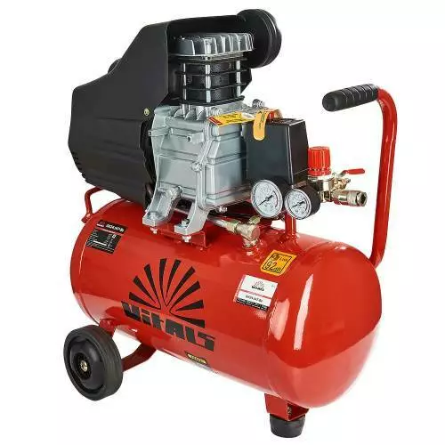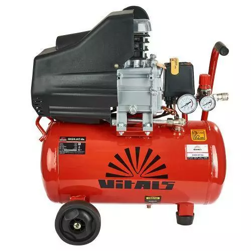 Vitals GK24.t47-8a поршневий компресор з прямим приводом. Апарат можна віднести до середньої продуктивності лінійці компресорів Vitals. Електромотор 1.3 кВт забезпечує продуктивність поршневої групи 170 л/хв та гарантує підтримку стабільних оборотів у всьому діапазоні робочих тисків.