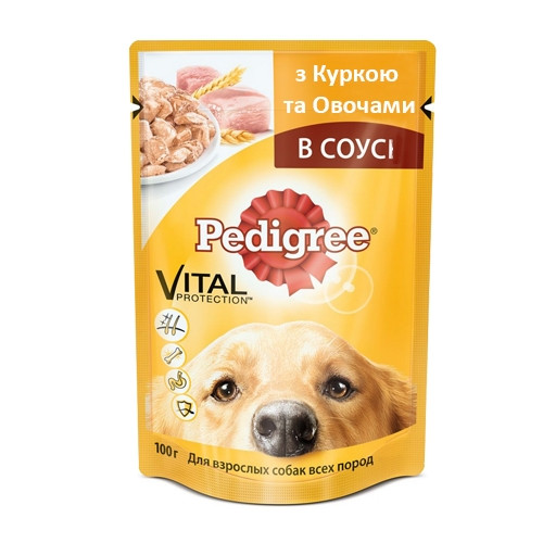 Pedigree — 100% повнораціонний консервований вологий корм для дорослих собак від 1 року, для постійного годування упродовж усього життя. Рекомендується для комбінованого годування із сухим кормом. Pedigree — це не просто порція соковитих м'ясних шматочків, але й корисний, оптимально збалансований раціон. Він забезпечує організм собаки вітамінами та мінералами, потрібними йому для здорового та активного життя.