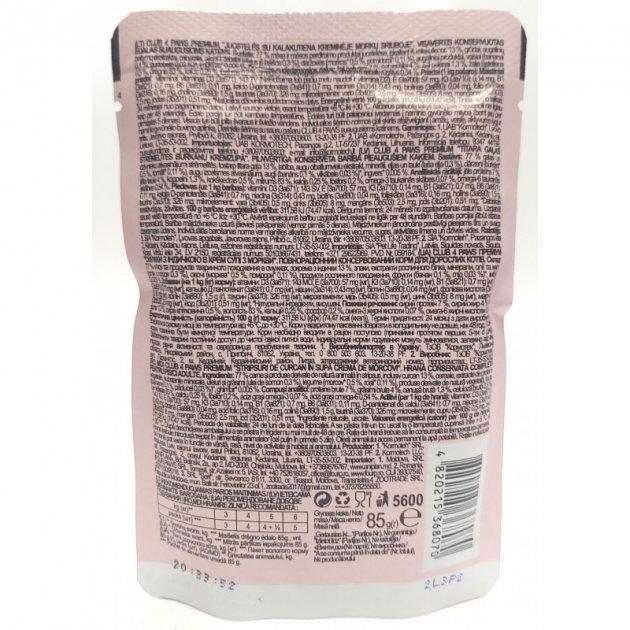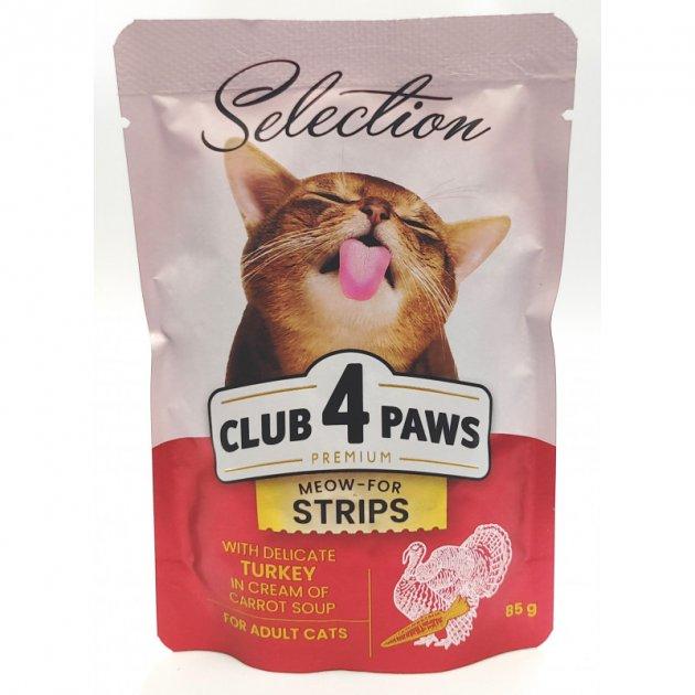 Консервований корм для дорослих для котів CLUB 4 PAWS (Клуб 4 Лапи) Premium Selection Смужки з індичкою в крем-супі з моркви, 85 г