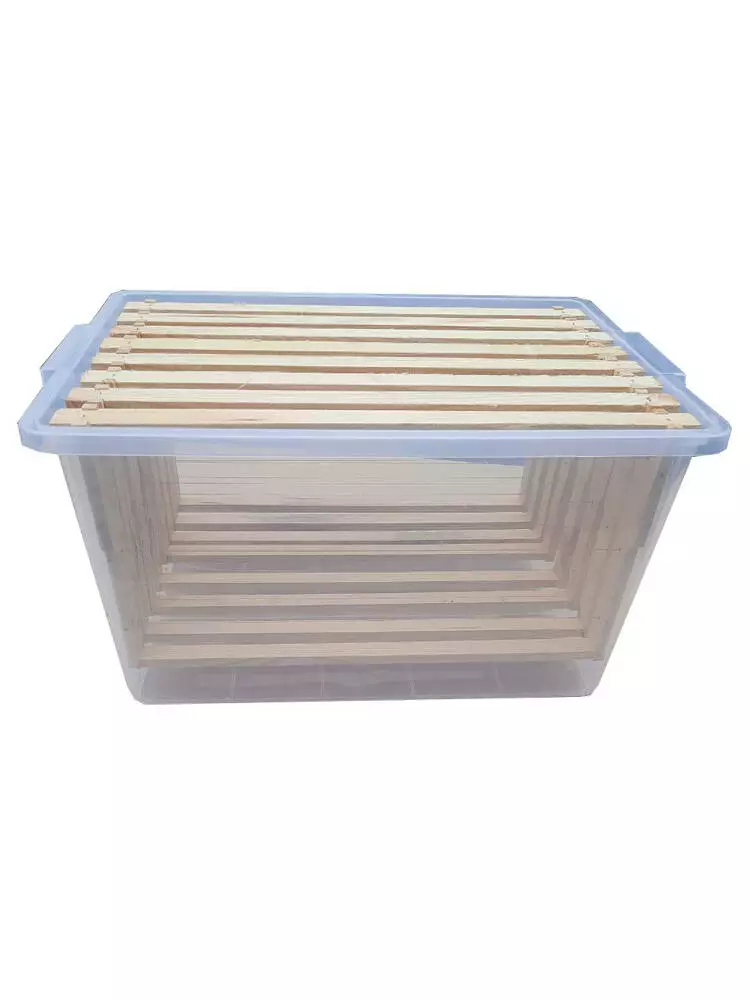 Контейнер для зберігання, транспортування та продажу медових рамок, а також може використовуватися для зручного зберігання та перенесення їжі. Контейнер виготовлений із якісного харчового пластику, абсолютно безпечного для здоров’я. Не містить шкідливих речовин. Кришка щільно закривається, додатково фіксується ручками.