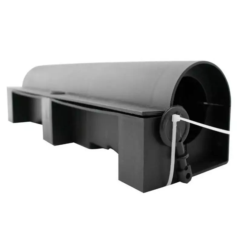 Контейнер дератизаційний тунельний - це ідеальне рішення для безпечного розміщення отруєних приманок від гризунів у квартирах, приватних будинках, дитячих установах, об'єктах громадського харчування, виробничих і промислових приміщеннях, а також не об'єктах, де заборонено використання родентицидів відкритим способом. Всередині контейнера встановлені металеві стержні, на які нанизують спеціальні парафінові, або тестові брикети, що сприяє збереженню приманки в середині боксу.