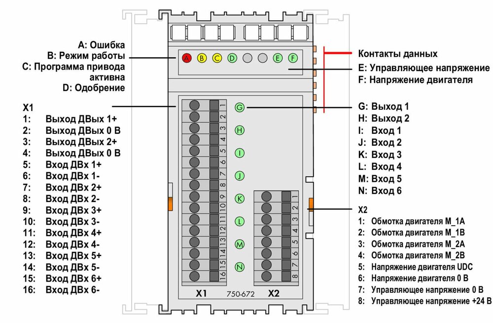 Є інтелектуальним контроллером крокового приводу зі встановленим силовим приводом, призначеним для управління 2-фазними кроковими двигунами до 70 В / 7,5 А. 64-кратне масштабування мікрокоманд перешкоджає втраті кроків із-за резонансу у фазі прискорення і перешкоджає надмірному зносу механічних частин. Регульовані обмеження струму при останові, прискоренні і постійній швидкості допомагають мінімізувати розсіяння потужності двигуна. шість входів, що конфігуруються, для пуску/останову, кінцевого обмеження, початкової установки, поштовхового/покрокового переміщення і т.п. можуть безпосередньо оброблятися внутрішнім програмним забезпеченням без всякої затримки. Два виходи можуть бути пов'язані з внутрішніми функціями або ж використовуватися вільно. Завдяки гнучким можливостям, таким як позиціонування з різним лінійним прискоренням, використання таблиць команд, функція розподільного валу, автоматичний опорний сигнал, і іншим керованим подіями характеристикам модуль підходить для широкого діапазону сфер застосування. Інтерфейс програмування однаковий для усіх модулів контроллерів крокових приводів WAGO.