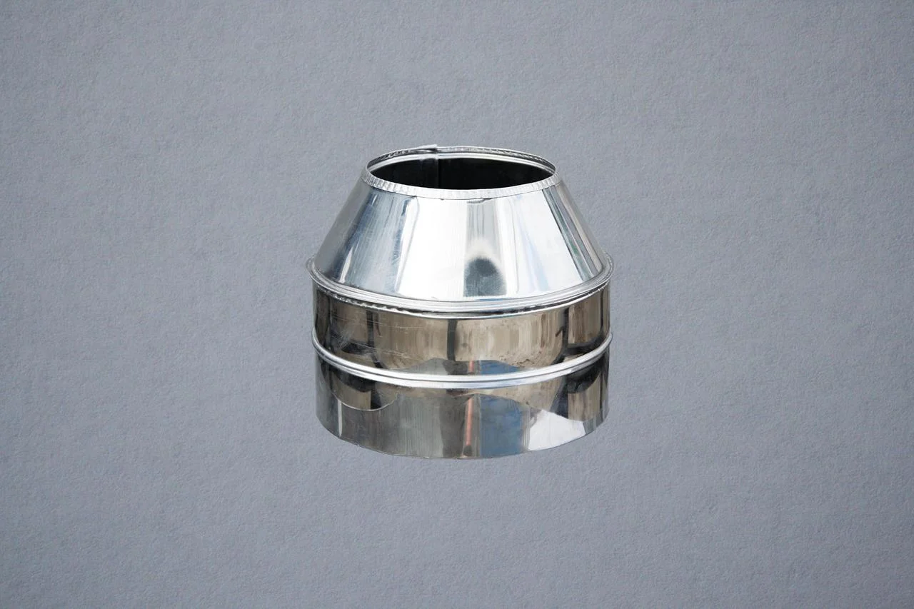 Конус двостінний для димоходу Ø300/380 - використовується як верхнє закінчення термоізольованого димоходу. Виконує функцію захисту утеплювача від впливу зовнішнього середовища. З'єднується з елементами системи димоходу без додаткових кріплень: "труба в трубу".