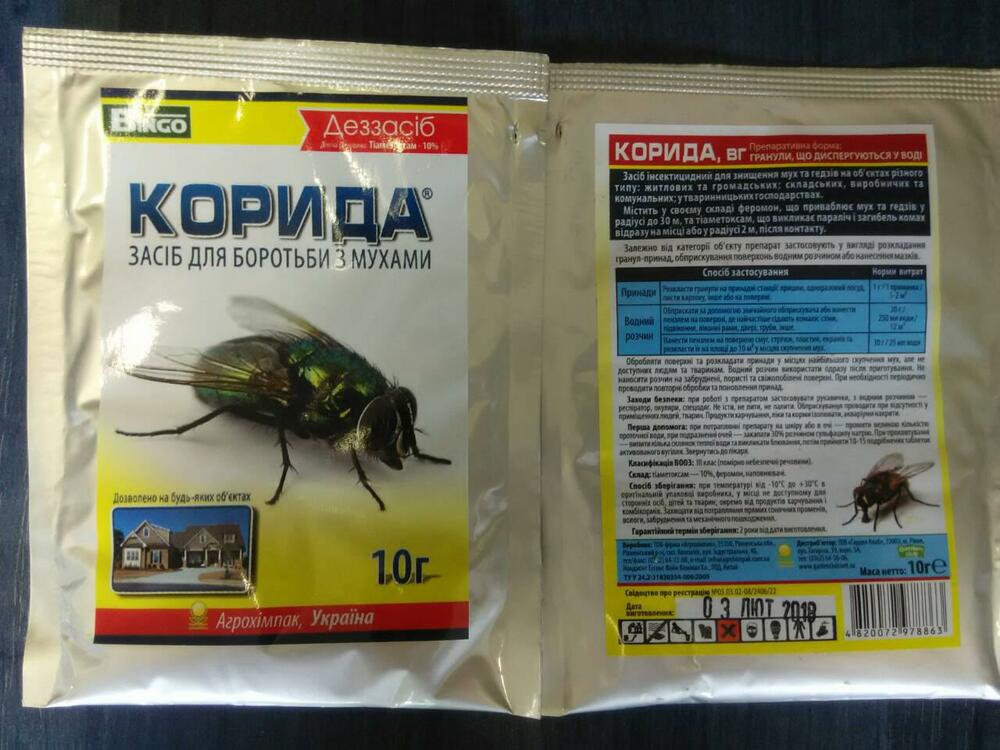 Обробку необхідно проводити у всіх приміщеннях, де були виявлені мухи, одночасно. Особливо ретельно — у місцях найбільшого їх скупчення.