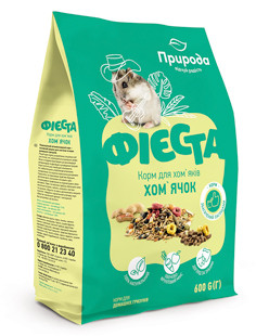Фієста «Хом’ячок» (PR241382) - повноцінний вітамінізований корм – основний раціон для хом’яків. Рецептура корму розроблена спеціально для хом’ячків, які утримуються в домашніх умовах. Вона складена у відповідності до рекомендацій ветеринарів та фахівців з розведення гризунів. Корм містить всі необхідні компоненти, які забезпечують улюбленців вітамінами, мінералами та іншими корисними речовинами. Грануляти та пресоване трав’яне борошно допомагають гризунам сточувати зуби, покращувати травлення та нормалізувати обмін речовин. Овес та насіння гарбуза збагачують меню амінокислотами, калієм, кальцієм, магнієм та цинком. Фрукти та овочі допомагають зміцнити імунітет. Завдяки герметичній упаковці корм зберігає приємний аромат і захищений від шкідливої дії вологи.
