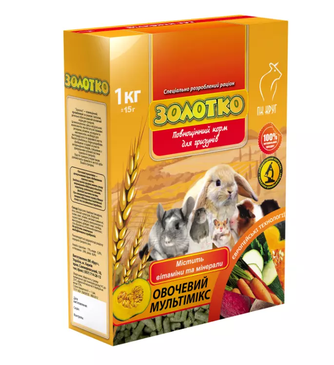 Корм "Золотко. Овочевий мікс" розроблений спільно з ветеринарними лікарями з урахуванням чутливої системи травлення гризунів. Хрусткі гранули в кормі, також, допомагають утримувати зуби вашого улюбленця в чистоті.