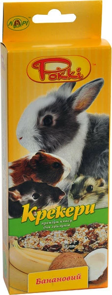 Крекер «Банановий» 2 в 1 - крекер для гризунів. Смачні і корисні крекери для гризунів преміум класу «Роккі» урізноманітнюють раціон декоративних гризунів і одночасно роблять можливість їм самим здобувати собі їжу подібно до природних умов.