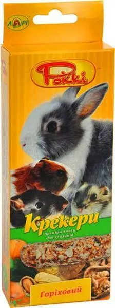 Крекери преміум-класу «Роккі» з арахісом, волоським горіхом, фундуком - смачне і корисне ласощі для гризунів. Урізноманітнюють раціон дрібних і середніх декоративних гризунів і одночасно дають можливість їм самим добувати собі їжу, як у дикій природі.