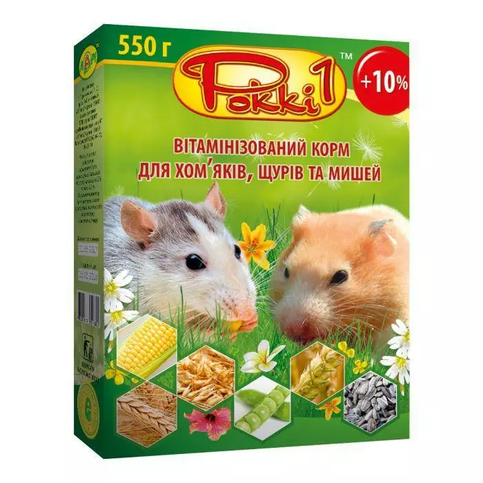 Роккі - 1 - корм для хом'яків, пацюків та мишейВітамінізований корм преміум класу Роккі 1 створюється з використанням лише відбірного зерна, вирощеного в екологічно чистих районах України.