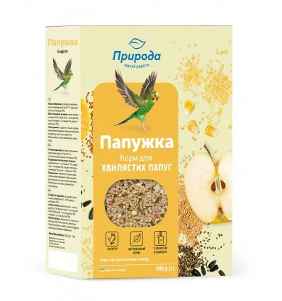 Повноцінний корм для хвилястих папуг "Папужка Енергія" 500 г, Природа
