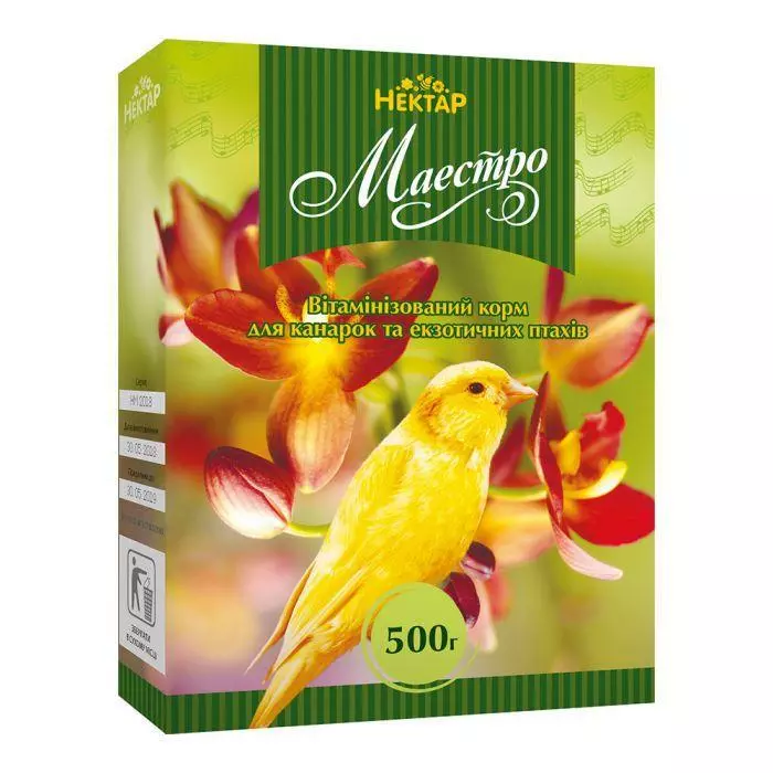 Спеціально підібрана вітамінізована зерносмесь для канарок та екзотичних птахів. Одна з основних складових зерносуміші - насіння очеретянки, найбільш підходяще для годування канарок та інших екзотичних птахів. Дуже корисний і поживний елемент з низьким вмістом клітковини. Другим важливим компонентом корми є ріпак, який забезпечує раціон птахів легкозасвоюваними амінокислотами, відновлює необхідний рівень протеїну в організмі.