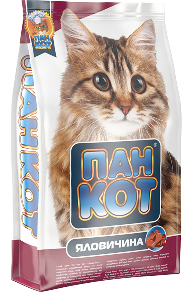 Сухий корм Пан Кіт «Яловича» - спеціально розроблений рецепт на основі яловичого м'яса, що містить збалансовану комбінацію вітамінів і мікроелементів, підтримує на належному рівні імунну систему кішки, враховуючи її фізіологічні особливості. Містить таурин для здоров'я очей та серця.
