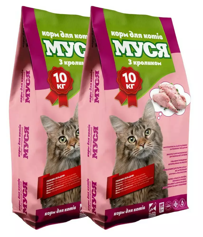 Корм для котів Муся зі смаком кролика 1 + 1 (20 кг)