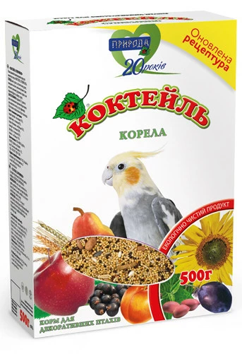 Корм для птиці Коктейль "Корела" корм для середніх папуг 500 г, Природа