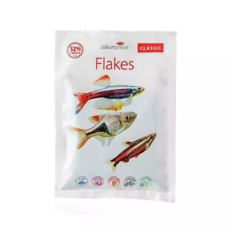 Класичне меню, пластівці. Універсальний збалансований повнораціонний корм для щоденного годування дрібних видів акваріумних риб, які беруть корм із поверхні й у товщі води: харацинових, живородящих, лабіринтових та інших., і навіть молоді. Містить усі необхідні поживні речовини та вітаміни для здорової життєдіяльності. Не потребує доповнення раціону іншими кормами.