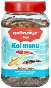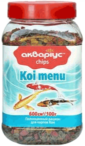 Корм "KOI MENU" сhips ("Меню для коропів Коі", чіпси) призначений для щоденного годування всіх різновидів коропів Коі, особливо зручний для молодняку.