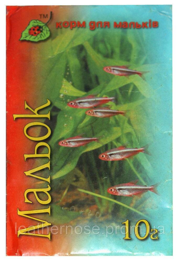 Корм «Мальок» - повноцінний багатокомпонентний гранульований корм для щоденного годування мальків. Гранули дуже зручні у використанні, так як кожна рибка легко відкушує потрібну порцію. Забезпечує швидкий ріст і гармонійний розвиток молодих риб, формує яскравий природний забарвлення. Корм для мальків містить усі необхідні речовини для швидкого зростання і розвитку риб.