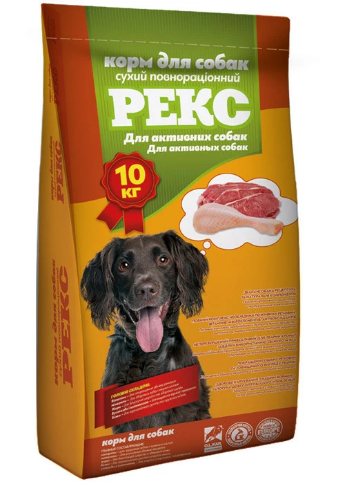 Корм виготовлено на найсучаснішому зарубіжному обладнанні, з використанням високоякісної сертифікованої сировини, ухвалений провідними ветеринарними фахівцями. «Корм Рекс» є улюбленим кормом для собак, тому що має неперевершений привабливий для тварин аромат без застосування штучних ароматизаторів. В його складі міститься велика кількість протеїну, вітамінів та мікроелементів для доброго засвоєння, активізації обміну речовин, стану шкіри та волосяного покриву, кісток, загального здоров’я