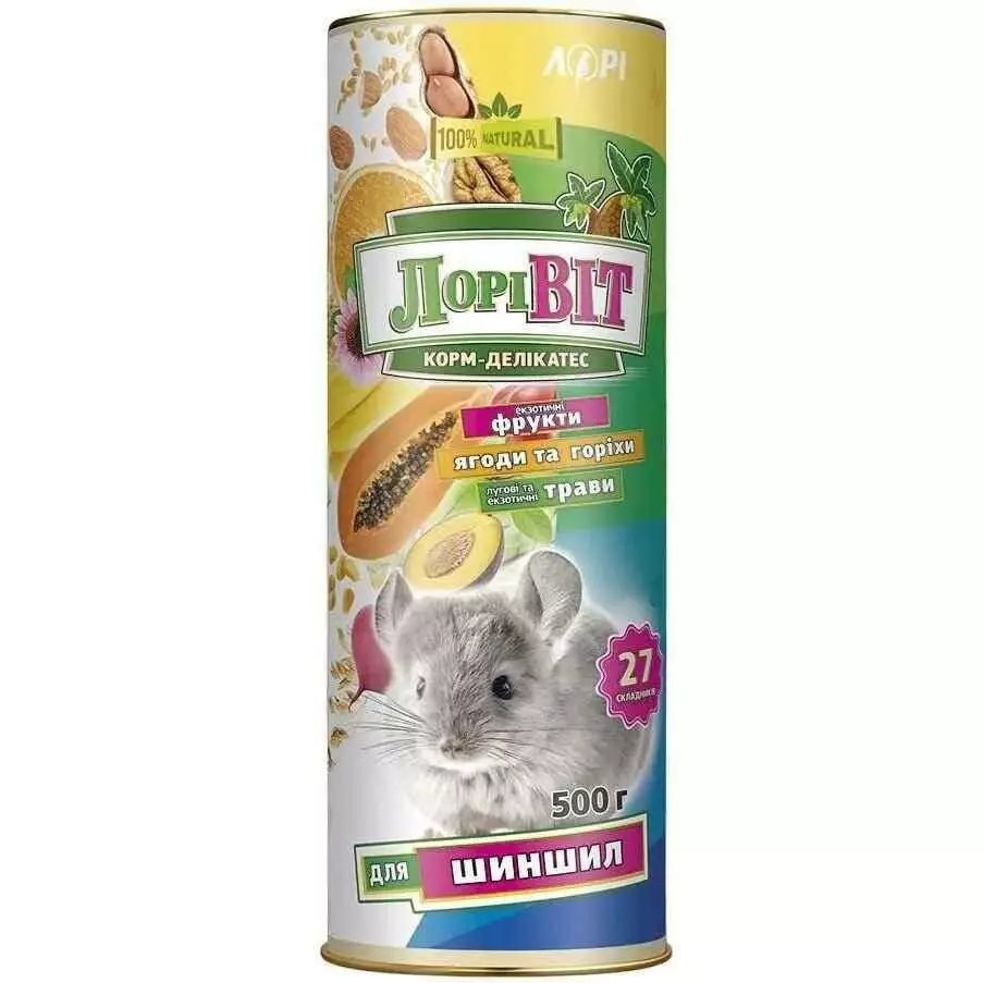 Рецептура корму Лорівіт-Делікатес розроблена з урахуванням рекомендацій провідних спеціалістів в галузі вирощування пушних звірів та зокрема шиншил. Упаковка корму максимально забезпечує герметичність та захист зерносуміші від комах та вологи, зберігає ароматичні властивості зерна та інших складників. Корм містить в своєму складі тільки високоякісні інгредієнти. Споживання тваринкою такого раціону забезпечить відмінне здоров'я Вашого улюбленця.