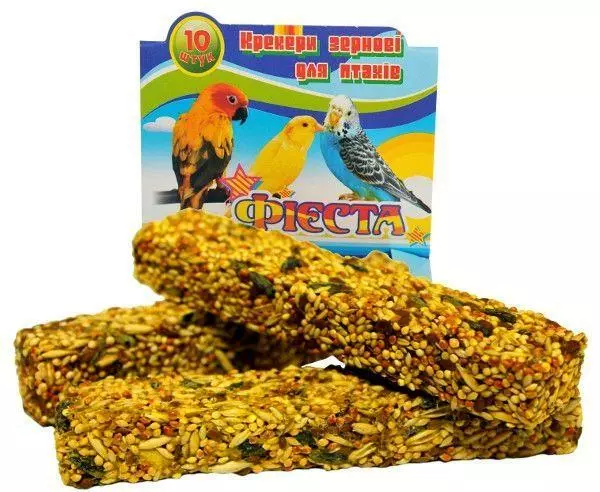 Крекер «Фієста» - додаткове харчування для декоративних птахів та ласощі з додаванням натуральних дріблених горіхів.