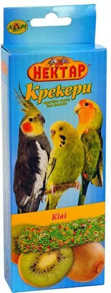 Крекери преміум-класу «Нектар» з ківі - смачне і корисне ласощі для птахів. Урізноманітнюють раціон декоративних та екзотичних птахів домашнього утримання і одночасно дають можливість їм самим добувати собі їжу, як у дикій природі.