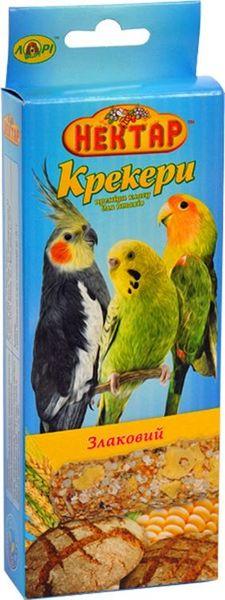 Крекери преміум-класу «Нектар» з кукурудзяними, житніми, рисовими пластівцями - смачне і корисне ласощі для птахів. Урізноманітнюють раціон декоративних та екзотичних птахів домашнього утримання і одночасно дають можливість їм самим добувати собі їжу, як у дикій природі.