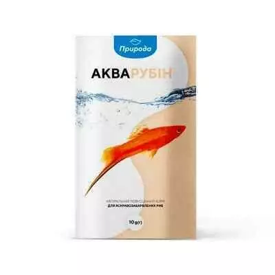 Корм для риб «Акварубін» - натуральний повноцінний корм для яскравозабарвлених риб. Крім кормових компонентів містить мінерали і вітаміни (А, С, В), а також каротин. Корм посилює природне забарвлення риб, забезпечує гарну кондицію. Сполучення кормів «Аквамікс», «Акварубін» і «Акваплант» серії «Природа» є оптимальним меню для годування риб протягом доби.