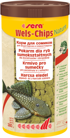 sera Wels-Chips - чіпси для сомиків є основним кормом без барвників та консервантів для глибоководної риби, наприклад, анциструсів та плекостомусів.
