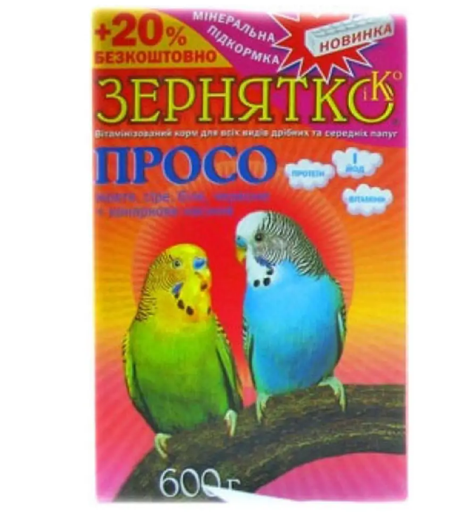 Корм Зернятко. Просо для дрібних і середніх папуг, 600 г