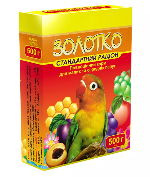 "Золотко. Стандартний раціон" - це корм, який нормалізує обмін речовин в організмі, запобігаючи ожирінню, і добре впливає на загальне самопочуття птахів. Своєю чергою, відмінне самопочуття стимулює бажання спілкуватися та розмовляти.