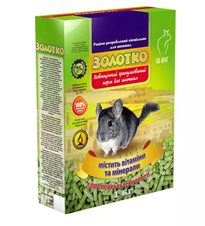 Корм Золотко (для шиншил, зерновий) має спеціально розроблений склад, що містить усі необхідні компоненти для нормального розвитку й обміну речовин в організмі тварин. Використання корму у якості основного раціону шиншили сприятиме чудовому зовнішньому вигляду та відмінному здоров’ю у Вашого улюбленця. Тварина матиме блискучу шерсть, міцні кістки та чудовий настрій.
