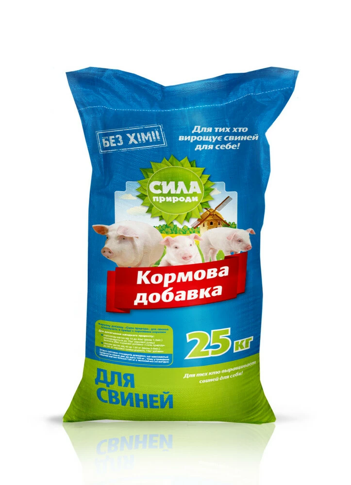 Для досягнення швидкого приросту поросят вагою від 10 до 40 кг (віком 1 - 3 міс.) рекомендується до 75 кг зернової суміші вносити 25 кг кормової добавки «Сила природи», свиням вагою від 40 до 120 кг (віком 3 - 6 міс.) до 85 кг зернової суміші додають 15 кг кормової добавки. Згідно світових стандартів доведено, що максимальні прирости свиня дає до ваги 120 кг, тому утримання свиней вагою більше 120 кг є економічно не вигідно.