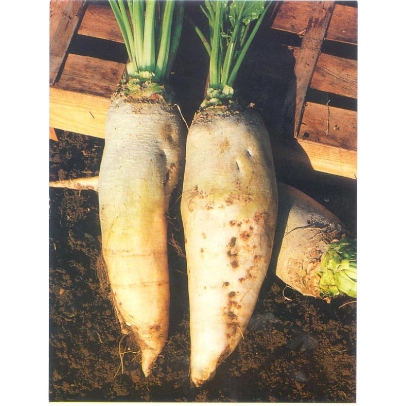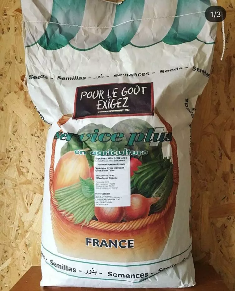 Кормовий буряк Білий гігант - популярний багаторостковий сорт, напівцукрового типу. Коренеплоди видовженої форми, добре виповнені, майже не мають бічних коренів. Забарвлення шкірки в надземній частині сіро-зелене, в заглибленій у грунт біле, м’якуш білий. Коренеплоди на половину заглиблені у грунт. Добре зберігаються, рекомендовані як корм для великої рогатої худоби.