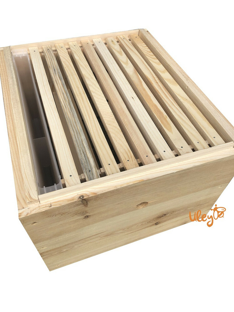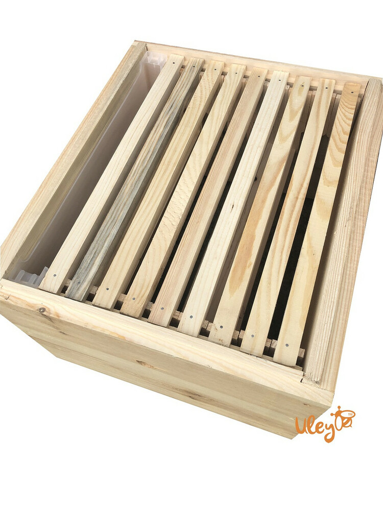 Годівниця ставиться впритул до рамок. Корпус годівниці виконаний з харчового пластика, небезпеки для здоров'я бджіл і людини не має. Легко миється, дезінфікується.