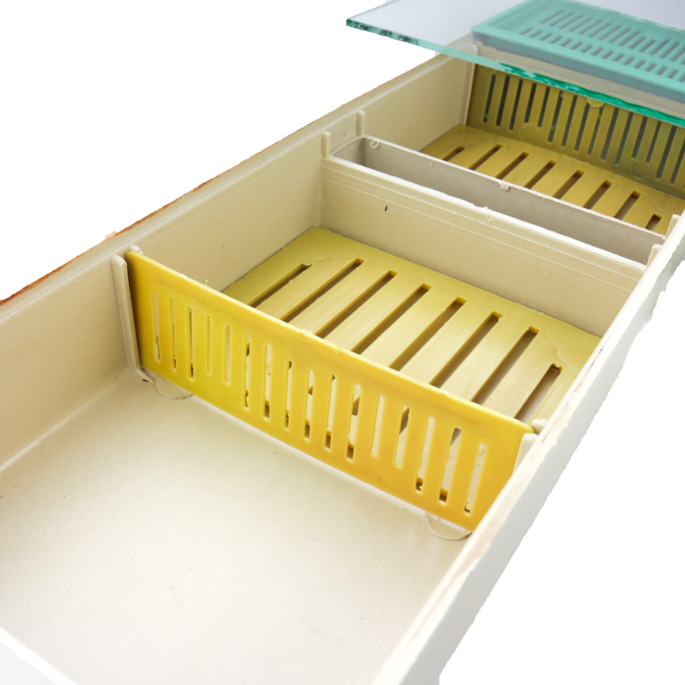 Призначена для роздачі підгодівлі бджолиним сім'ям всередину вулика. Виготовлена ​​з полістиролу. Складається з корпуса, перегородки, двох плотиків, решітки та скляної кришки.