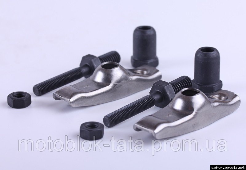 Коромысла комплект (шпильки, гайки, винты) на 2 кл. - 177F подходят на бензиновые двигатели мотоблоков, генераторов и др., мощностью 9 л.с. с воздушным охлаждением. Комплектация на 2а клапана: коромысла, шпильки, гайки, винты. Вес комплекта: 53 гр.
