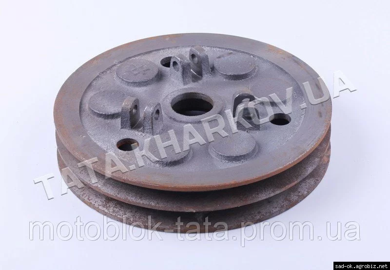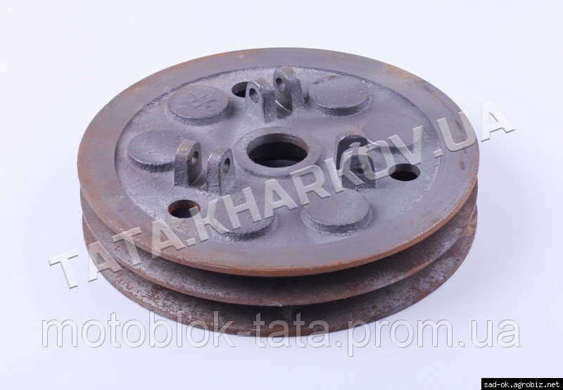 Корпус муфты сцепления (2 ручья) - MFC подходит на дизельные двигатели мотоблоков и мототракторов мощностью 7/8/10/12 л.с. с водяным охлаждением. Корпус муфты сцепления пустой, под ремни с профилем "В". Материал: чугун. Диаметр наружный: ?mm, Ширина общая: L-mm. Вес: гр.