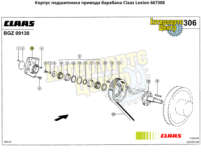 Корпус підшипника приводу барабана комбайна Claas Lexion.