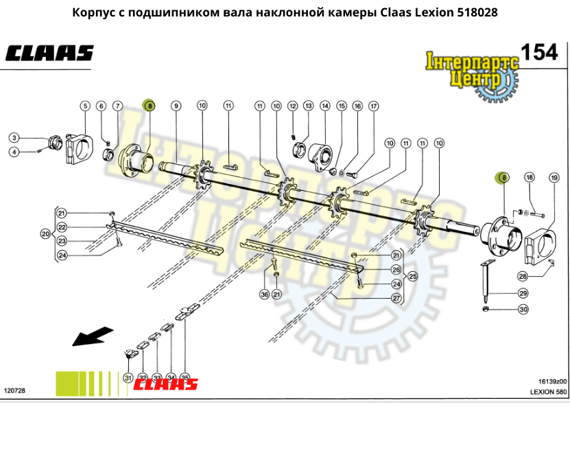 Корпус підшипника похилої камери (без підшипника) Claas Lexion 518028, 000518028, 518028.1, 5180281, 0005180281