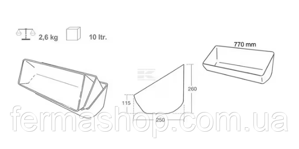Важка пластикова годівниця, виготовлена з високоміцного та гнучкого матеріалу, для кріплення на стіні. Завдяки гладкій поверхні годівниця легко встановлюється та чиститься. Її дизайн і відсутність гострих кутів полегшують тваринам спорожнення. Сировина відповідає нормам безпеки харчових продуктів, а пластик стійкий до УФ-випромінювання, тому дуже підходить для тривалого використання на відкритому повітрі.