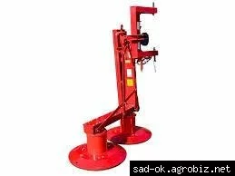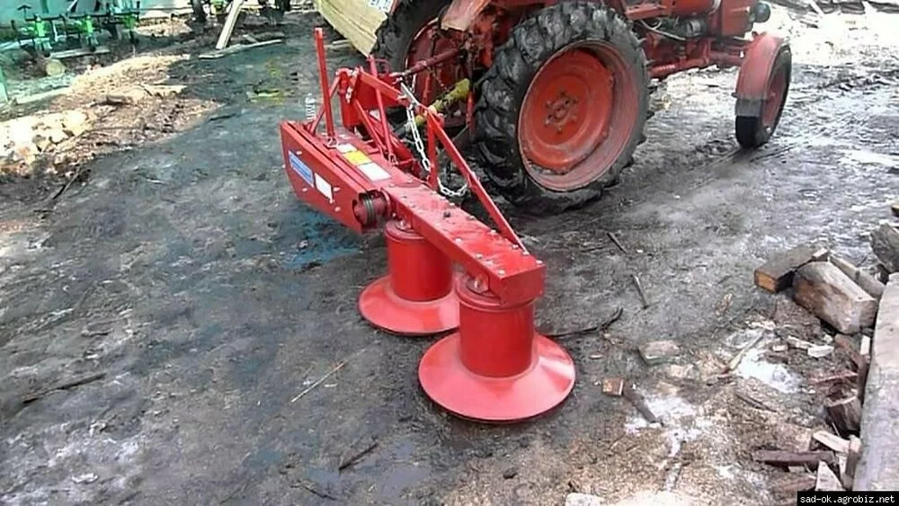 травой. Косилка роторного типа, с двумя рабочими элементами, захват